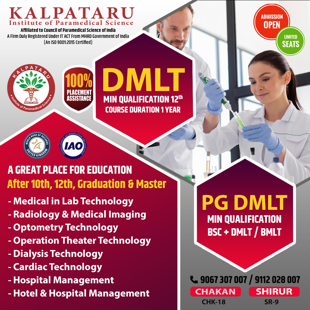 Diploma in Medical Laboratory Technology (DMLT) Diploma in Medical Radiology Technology (DMRT) Diploma in Operation Theater Technology (DOTT) Diploma in Dialysis Technology (DDT)